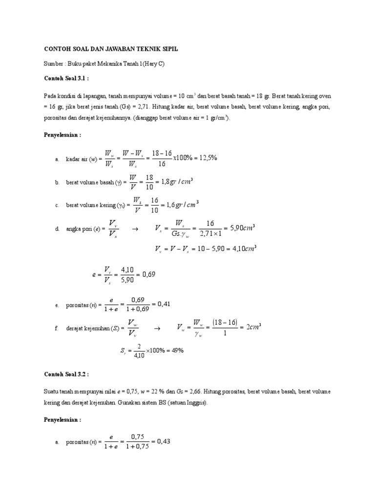 Untuk contoh soal bidang lainnya, seperti teknik sipil, keuangan, bidan, perawat, jaksa, pertanian, pertanahan, kelautan dan perikanan dan bidang bidang lainnya bisa anda demikianlah pembahasan 50 contoh soal cpns 2018 seleksi kompetensi bidang (skb) pendidikan beserta kunci jawaban. Ya, karena sebenarnya apabila di. Seputar teknik sipil december 27, 2018. Sedangkan gambar kerja adalah gambar yang mempunyai. Berat tanah kering oven = 16 gr, jika berat jenis tanah (gs) = 2,71.
